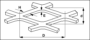 D: Diagonal Mayor. E: Espesor de la chapa. H: Ancho del nervio. d: diagonal menor. |